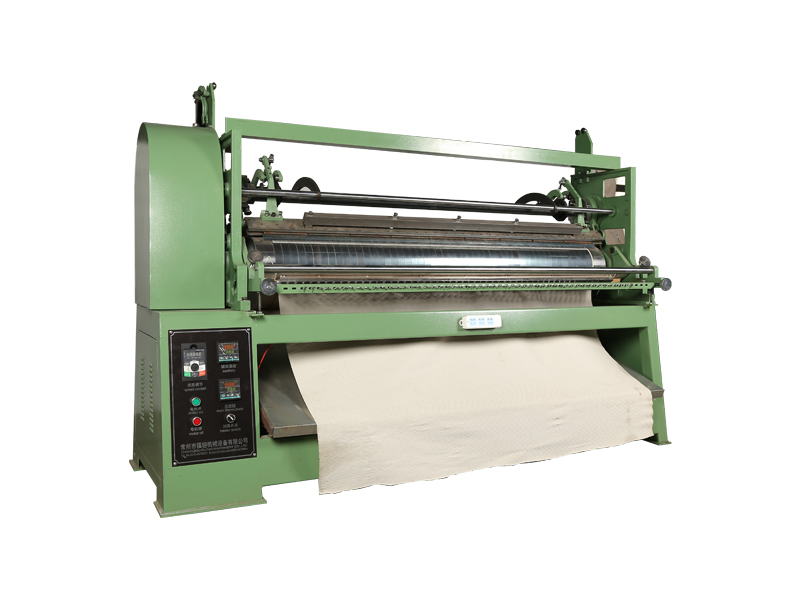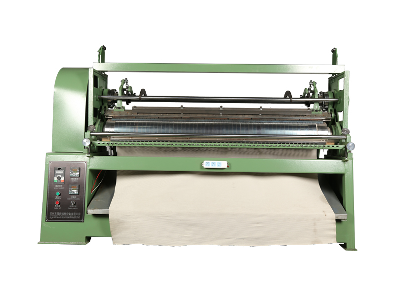 該機(jī)是化纖、混合織物熱定型打折的專用設(shè)備。定型后的織物可制作裙類、披風(fēng)和各類裝飾。打折形式分為1)整幅寬完全打折;2)一端打小折,另一端打大折。打折高度和幅寬隨意可調(diào)。