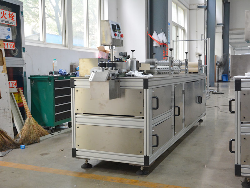 該條形帽機(jī)適用無紡布厚度9~12gsm,原料幅寬460~470mm。一機(jī)多變,更換模具可以生產(chǎn)各種規(guī)格條形帽,如長度17”,18”,19”,20”,21”。設(shè)備運行穩(wěn)定,最快每分鐘150片,產(chǎn)品合格率達(dá)99%以上。